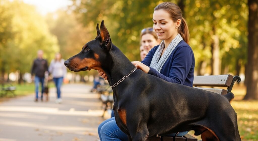 Dobermans exist as dogs who concentrate their attention on people. Doberman dogs developed from personal protection dogs stay loyal to their owners while they pay attention to their body language.