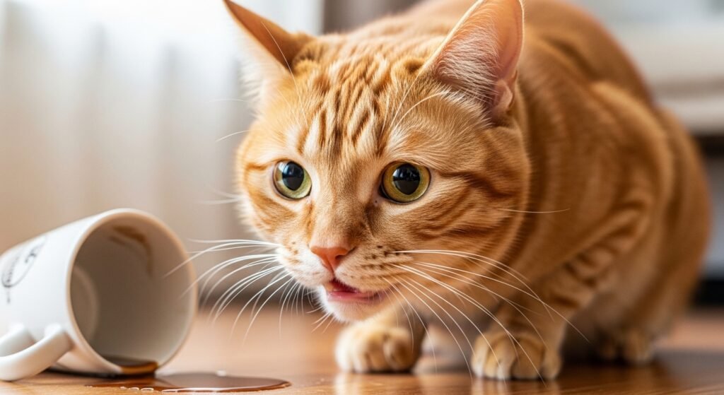 Caffeine exists in coffee and tea and certain sodas since it functions as a nervous system stimulant. The smaller body size of cats makes them more vulnerable to caffeine compared to other animals.
