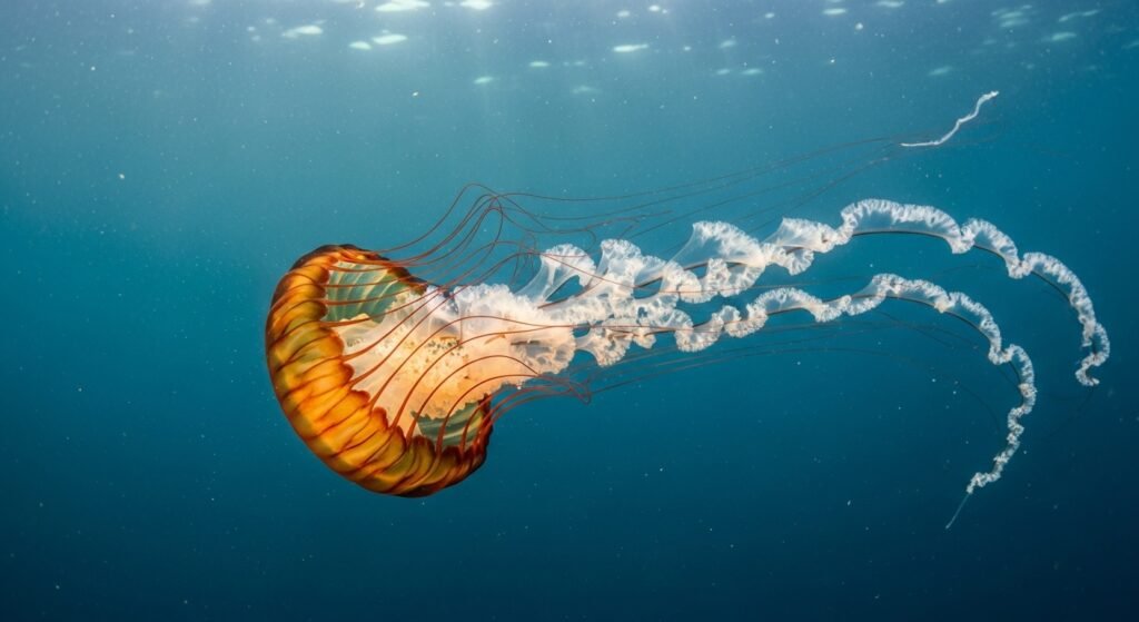 Arctic giant jellies pulse 30 mph currents, tentacles 200 feet lassoing fish dumb enough to swim close. Bell throbs, stings fry nerves pronto. Newfoundland divers skirt the web-o-death, arms longer than semis. Chills despite the float. Sea’s lazy assassin.