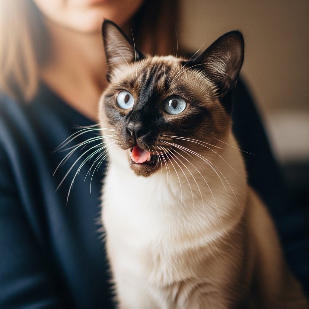 People know Siamese cats for their ability to produce loud vocalizations while they interact with others throughout the day. The bond between these two people stays strong because they use meows and chirps to interact with each other.