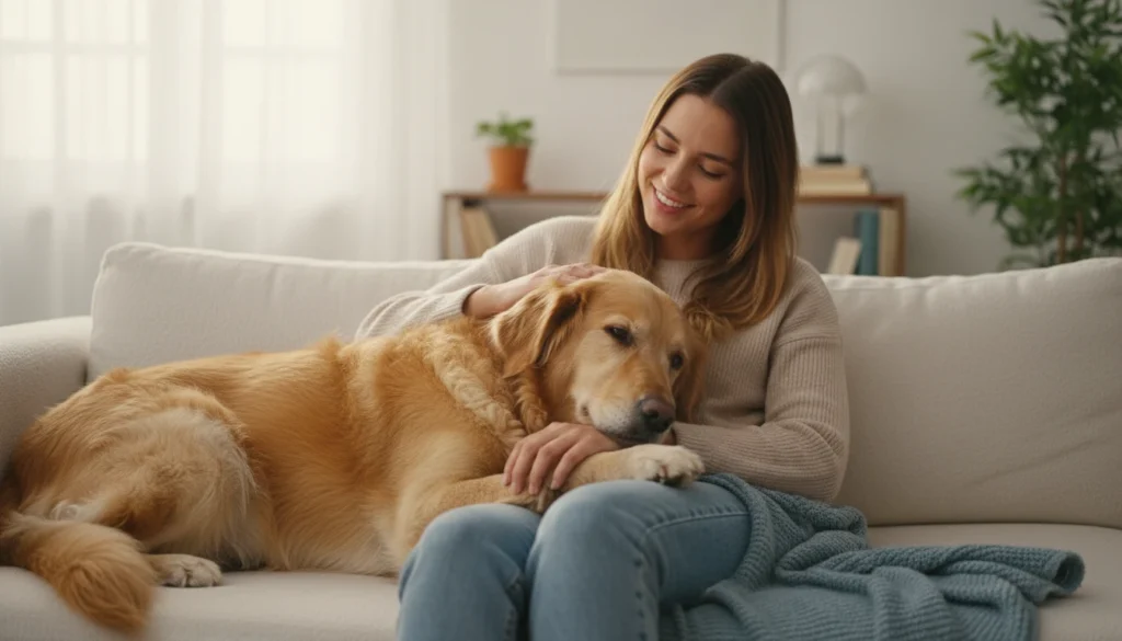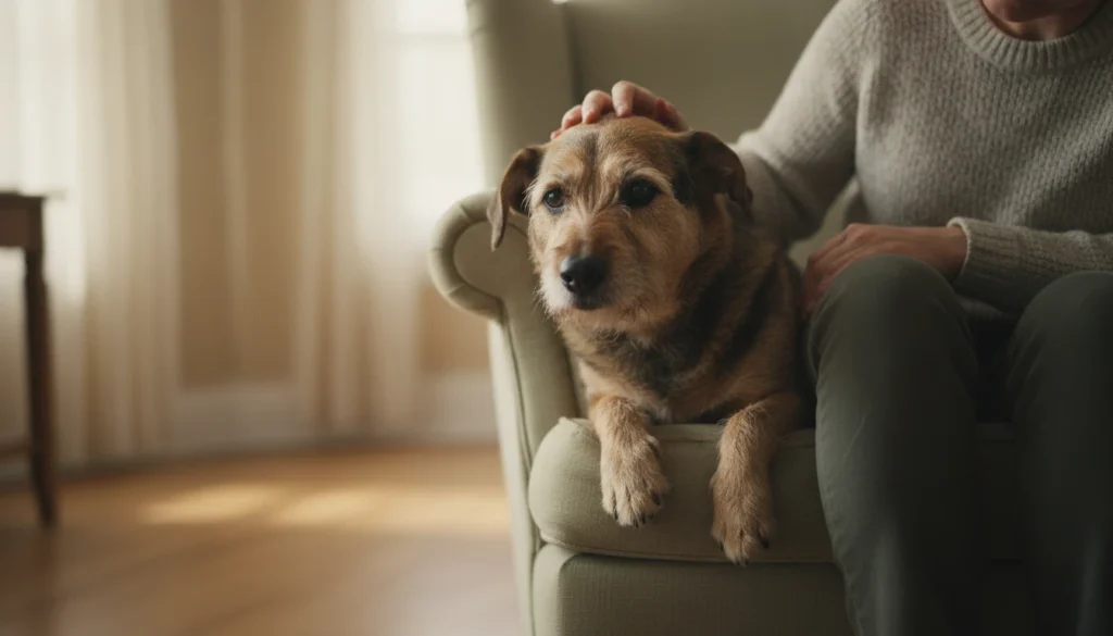 Age slows your older dog but amps demands, creaky joints leading to lap sits or gentle prods for help up. Existing aged means more reliance, eyes pleading softly. It repeats in mornings or evenings, uncertain if meds help enough. Feels tender yet draining. You assist, it continues mildly.