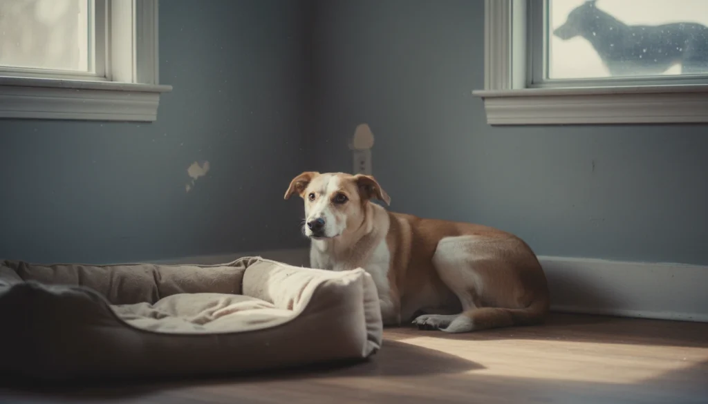 Stress from loud neighbors or storms has your dog hiding then demanding pets under the bed, trembling close. Experienced amid chaos, it pulls you in for shared calm. Softens post-storm maybe, but echoes lightly. Uncertainty with triggers. Owning through it means that extra layer.