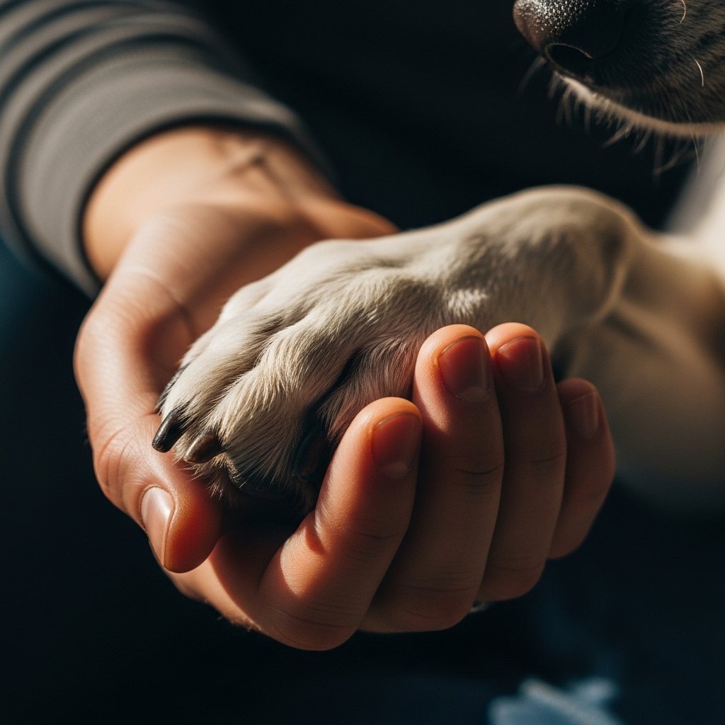 The first stage of building trust with a dog ends when the dog accepts gentle paw contact. Calm moments between two people create an atmosphere which allows them to become more familiar with each other.