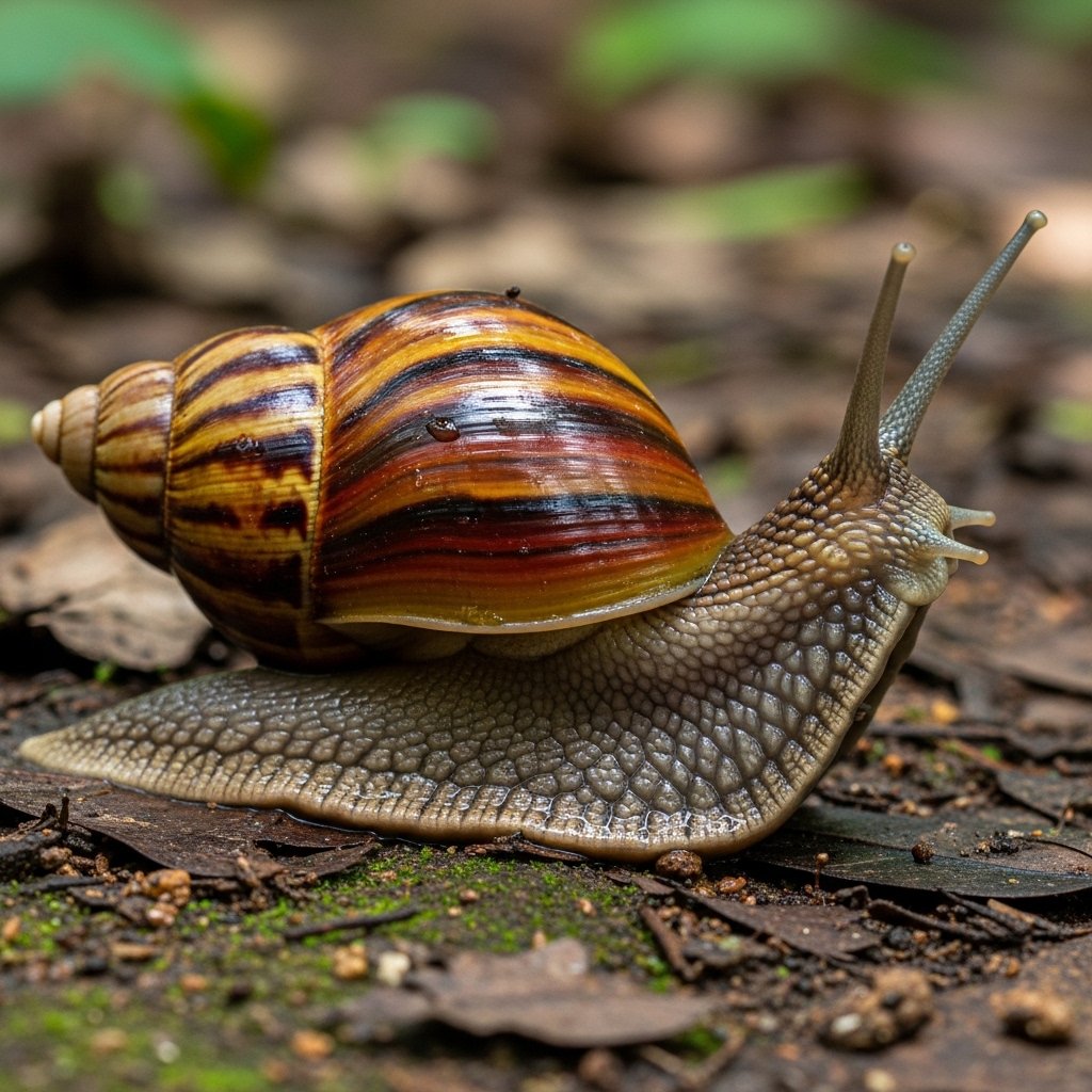 These large native snails are carnivorous and found in forested regions. Their beautifully patterned shells make them distinctive among land snails.