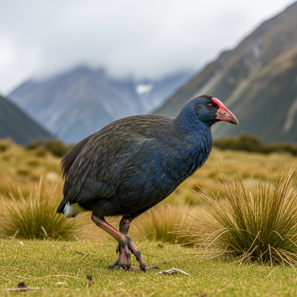 The takahe exists as a colorful flightless bird which scientists thought to be extinct until they found it in alpine territories. The ongoing conservation initiatives work to maintain the bird’s existing population.