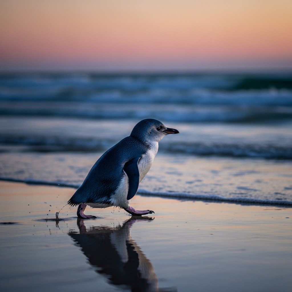 The kororā penguin species holds the title of the smallest penguin species which exists across the world. The bird leaves the ocean at dusk to visit coastal regions throughout New Zealand.