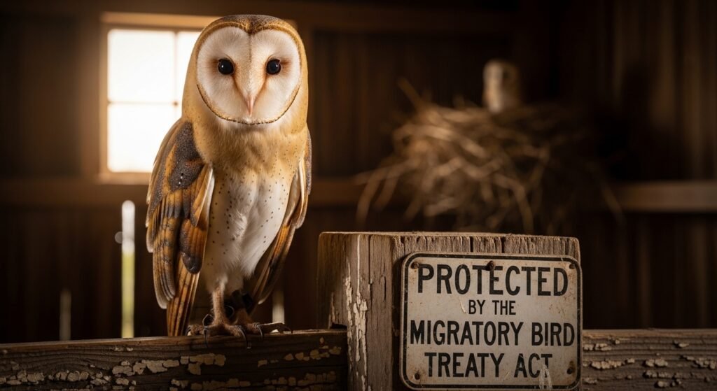 The Migratory Bird Treaty Act protects barn owls from human interference. People need to obtain special permission before they can disturb nests or harm the birds.