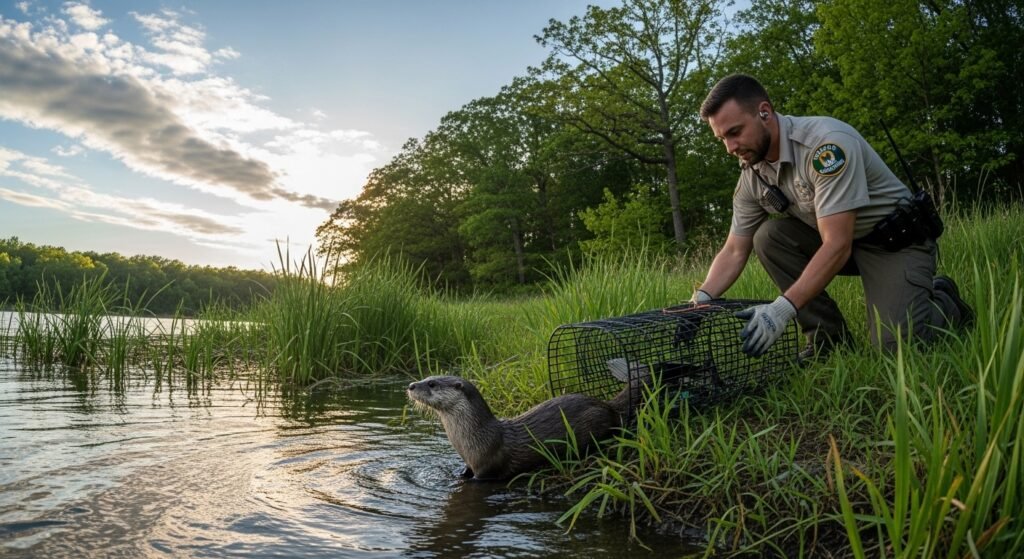 State wildlife laws provide protection for otters which require wildlife management to remove them from protected areas.