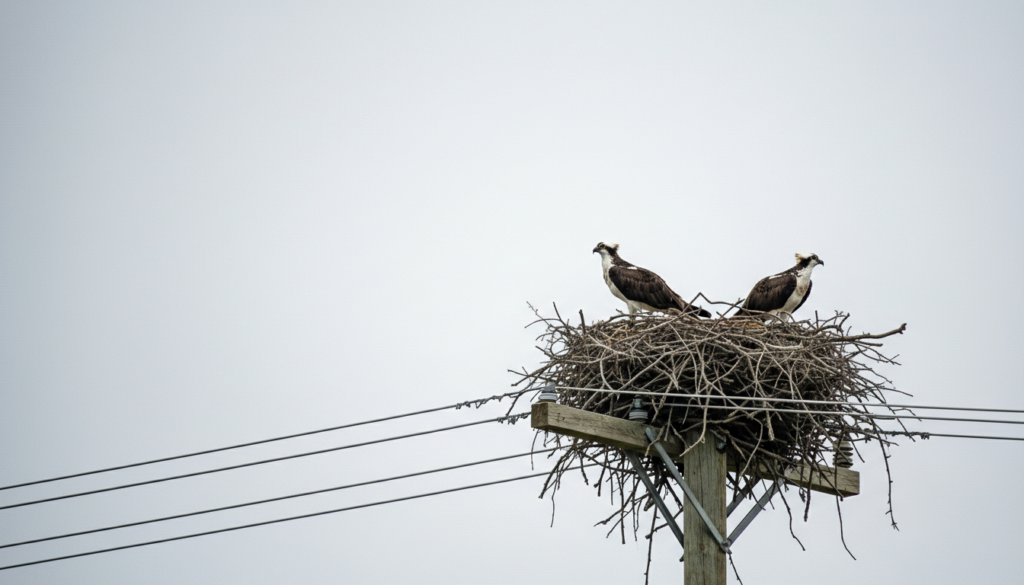 Migratory bird laws protect Ospreys and their nests from harm. The law requires permits for any nest removal even if the nest exists on utility poles or private property.