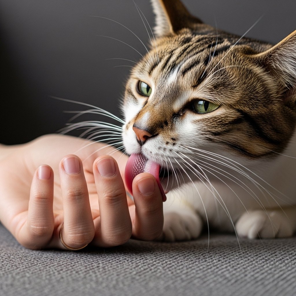Cats use grooming to bond with their selected friends while they establish their social relationships. Your hand gets licked by him while he nibbles your fingers because he wants to show his love. The two individuals use this practice to exchange their personal scents while they establish closer connections.
