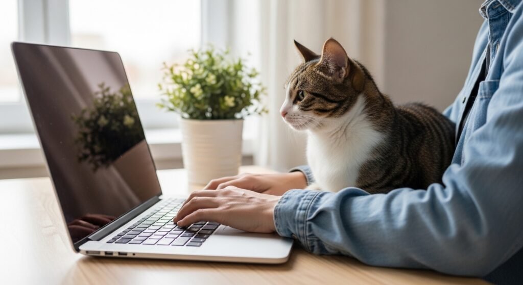 Your laptop goes beyond warmth because it contains your personal scent and demands your focus. Cats prefer to stay in areas which provide them with warmth and access to your scent and the chance to socialize. When they block your path to your work, they actually want to be near you instead of breaking your focus. They want to share the same area with you while you work instead of staying in separate spaces.