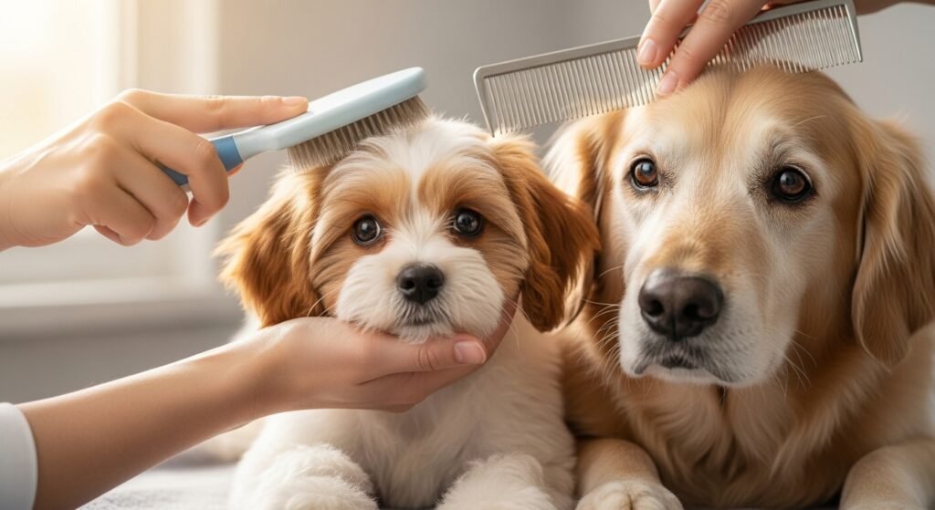 Puppies are still learning to tolerate grooming, so keep sessions short and gentle. Elderly dogs may have common pain or sensitive skin, taking slower movements and redundant comfort during fixing routines.