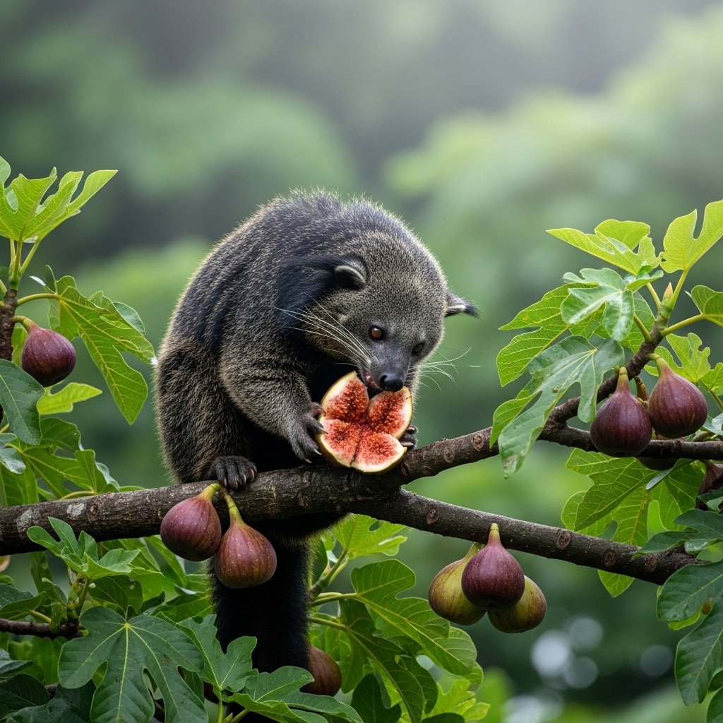 Figs serve as essential species which support ecosystem stability in various Asian forest ecosystems. Binturongs are among the few animals capable of swallowing large fig seeds intact, helping ensure successful reproduction of these important trees.