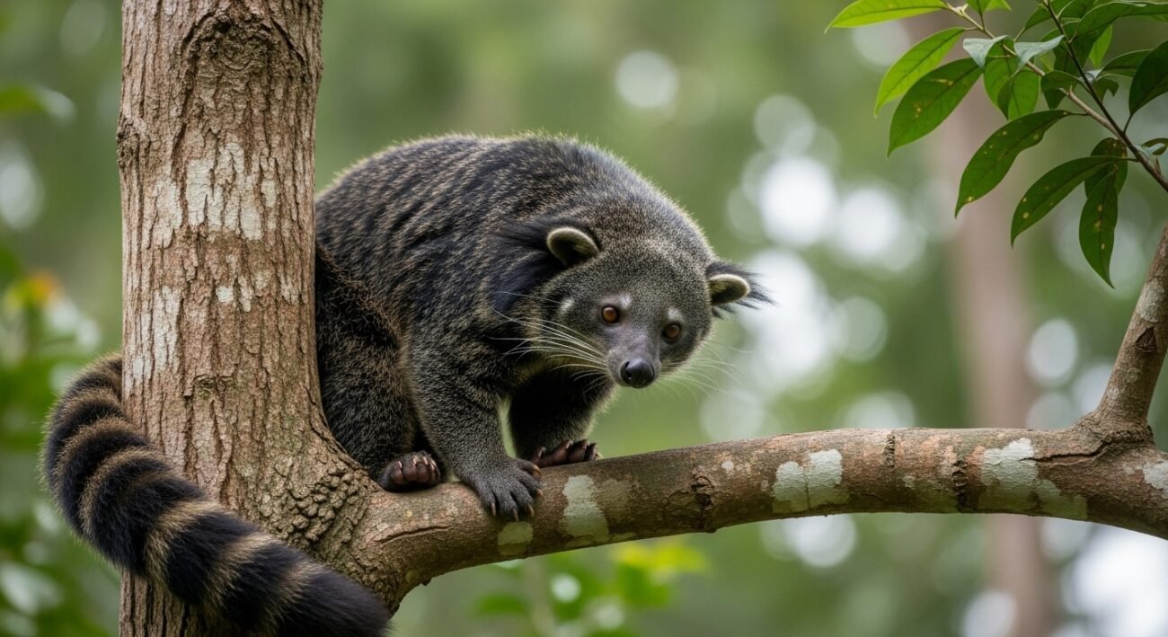 The forest regions of South and Southeast Asia serve as home to a reclusive mammal which spends its life among trees and which remains unknown to the public. The binturong which people sometimes call the “bearcat” serves an essential function for ecological systems. The nocturnal animal uses its slow speed and strong tail to move through its habitat while consuming fruit to maintain forest ecosystems which most people fail to recognize. The following ten points demonstrate why it needs to be honored.