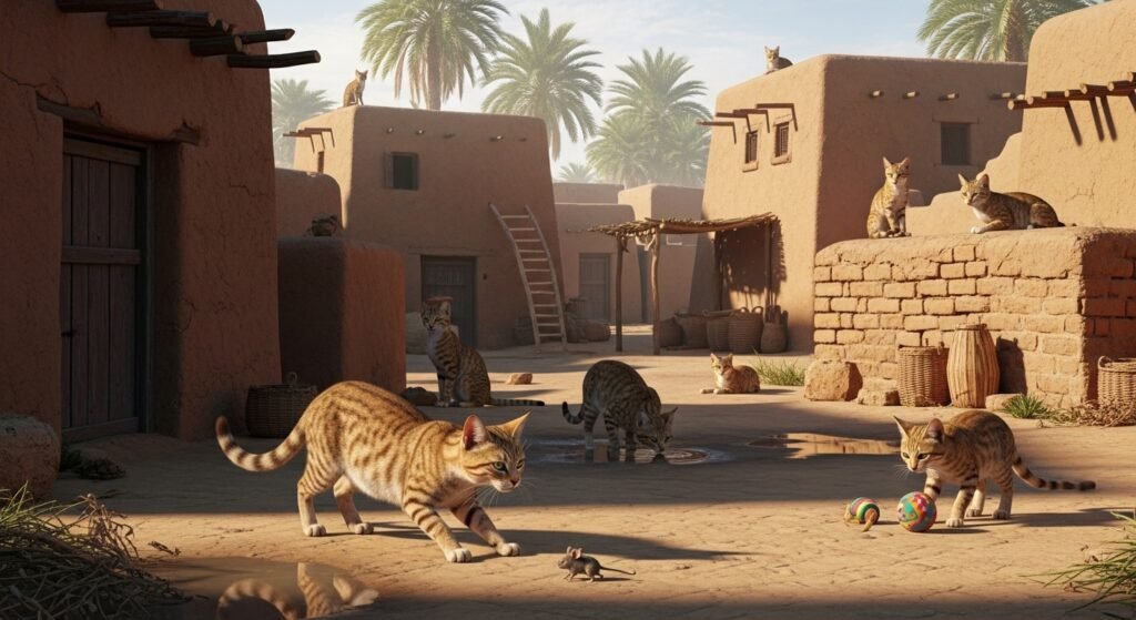 By the time of Ancient Egypt, cats had moved beyond practical farm helpers and into the realm of spiritual symbolism and household protection. Artistic depictions, mummified remains, and temple offerings show that Egyptians admired cats for their grace and vigilance, reinforcing their place not only in homes but also in cultural identity.