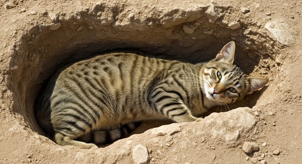 In 2004, researchers working at Shillourokambos uncovered a 9,500 year old grave containing a human carefully buried beside a cat, a discovery that pushed back the timeline of feline domestication by several thousand years. Because the island of Cyprus had no native wildcats, the animal must have been transported there by sea, proving that early farmers valued cats enough to bring them deliberately into their communities.
