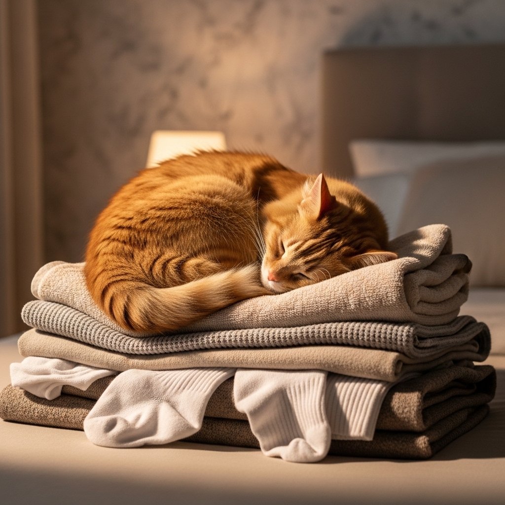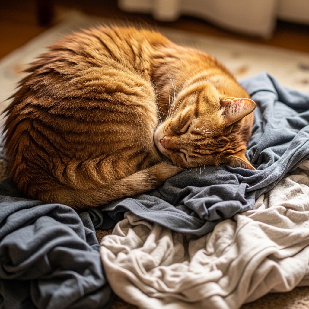 Freshly dried laundry holds warmth and familiar scents. Cats often curl up on soft, warm fabrics because it feels safe and soothing.