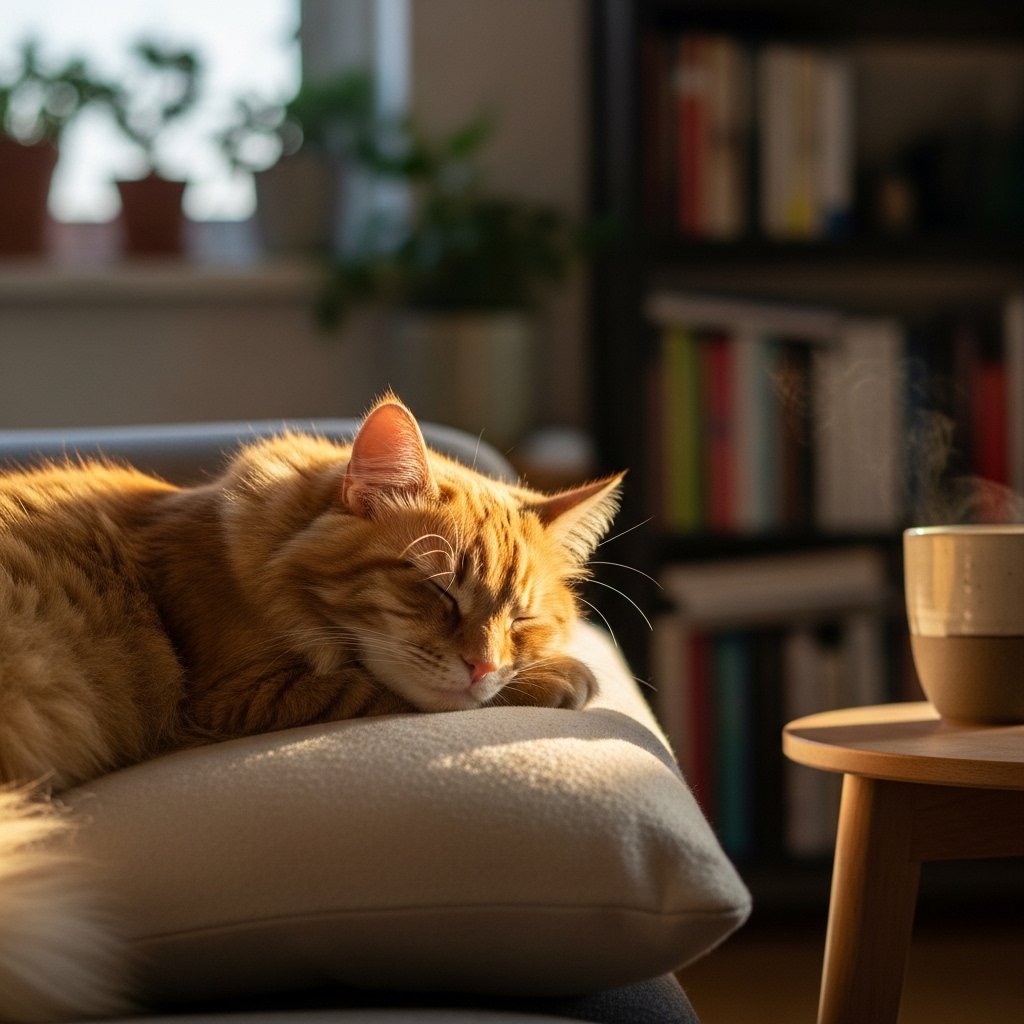 Low-volume music or calm household sounds can create a relaxing atmosphere. Many cats prefer to listen to soft sounds instead of being completely alone in a silent environment.