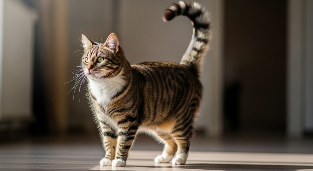 Tail movements reveal a cat’s emotional state. A high, upright tail generally signals confidence or benevolence, while a puffed- up tail indicates fear or agitation. Slow, gentle tail sways frequently mean curiosity, while rapid-fire flicking can gesture infection.