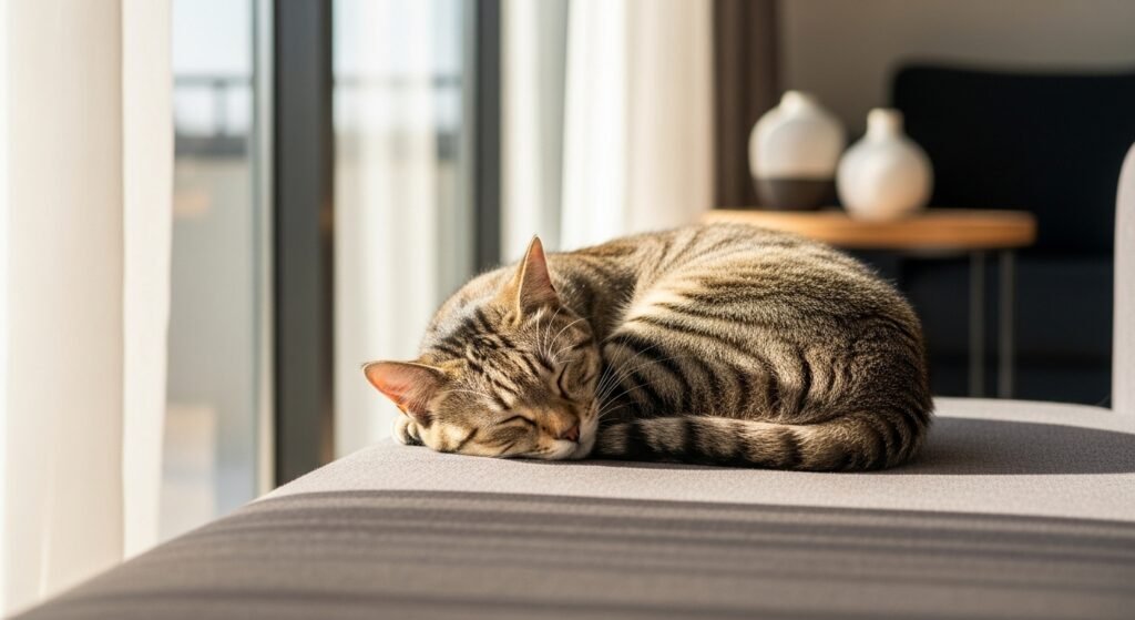 Normally, cats sleep between 12 to 16 hours a day, with some sleeping up to 20 hours. This behaviour is embedded in their evolutionary history as nimrods, where conserving energy was essential for short bursts of violent physical exertion.