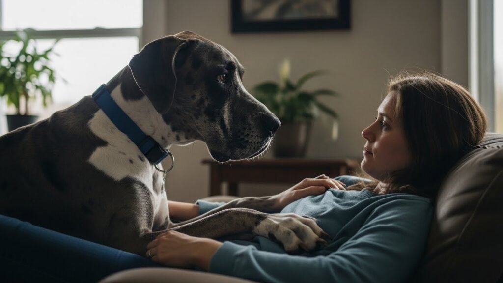 Despite their assessing size, Great Danes are gentle and emotionally dependent on their chosen person. They form strong bonds through fellowship and physical closeness, frequently following their favorite human from room to room. Their nature is calm, steady, and deeply embedded .