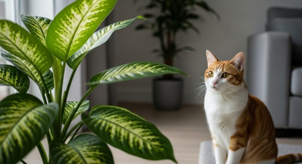 Dieffenbachia contains undoable calcium oxalate chargers that bring immediate infection when swallowed. Cats may show violent oral pain, drooling, swelling of the lips, and difficulty swallowing. While infrequently fatal, the discomfort can be severe and may intrude with breathing if swelling worsens.