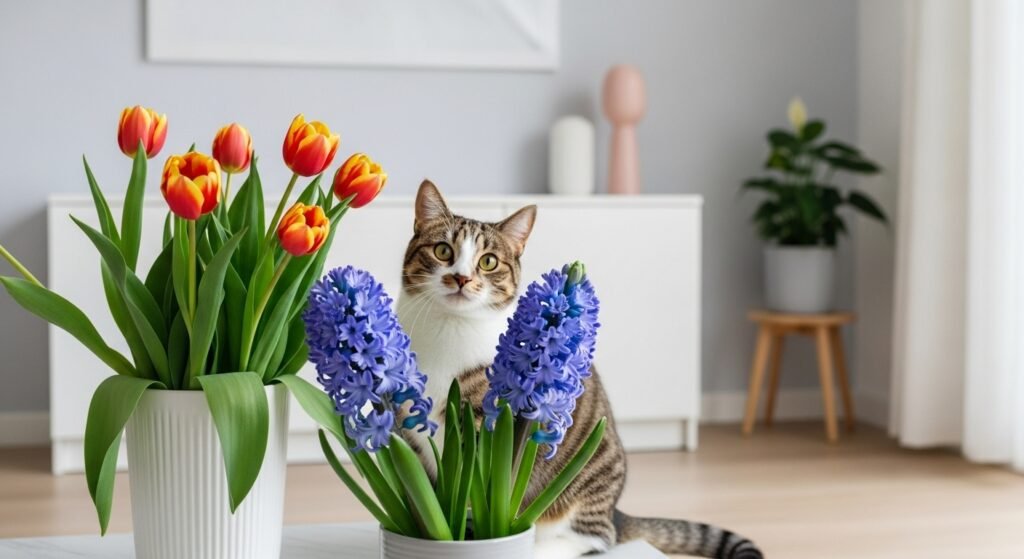 These popular plants contain venom concentrated substantially in the bulbs. Cats that dig or bite on them may witness violent gastrointestinal infection, drooling, puking, diarrhea, and abdominal pain. Large ingestions can bring heart rate changes and breathing difficulties.