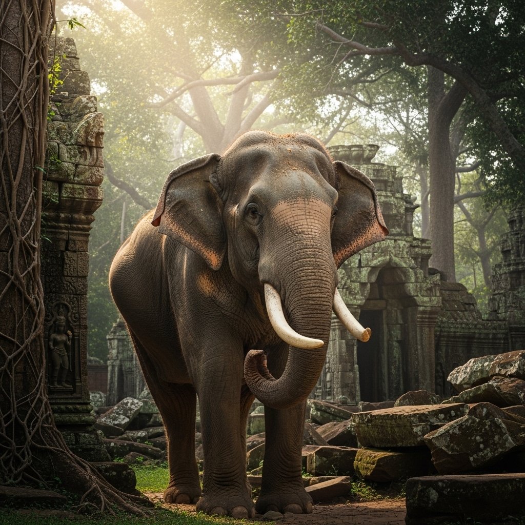 In South Asian regions elephants functioned as symbols of wisdom and power. The Ganesha deity shows himself with an elephant head which represents intelligence and the ability to overcome challenges. The massive presence of the objects which created the space between holy sites and other locations resulted in people showing both respect and deep admiration.