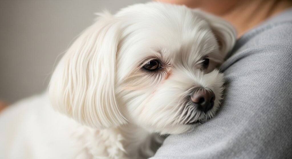 It’s common for Maltese dogs to snuggle up, lie next to their possessors, and vocally press against them when they are relaxing. They are veritably reassuring dogs because of their gentle disposition, frequently furnishing snuggling as a means of furnishing emotional support.
