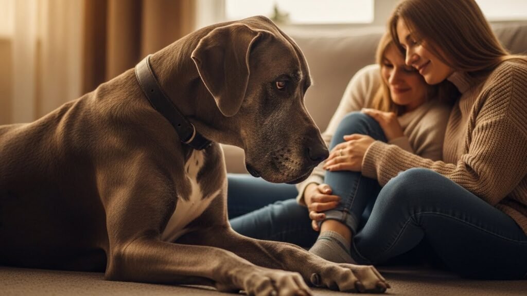 Great Danes are gentle titans that frequently bond deeply with one primary caregiver. Their attachment is embedded in emotional perceptivity and dependence. They prefer being close to their chosen person and can come worried if separated for long ages, pressing the depth of their loyalty.