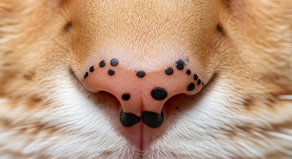 They are known to develop lentigo, which is generally harmless. In lentigo, little freckles form on areas like the nose, lips, gum tissues, and edges of the eyes. In other words, this is related to colors that make an orange cat orange. This progresses with age.