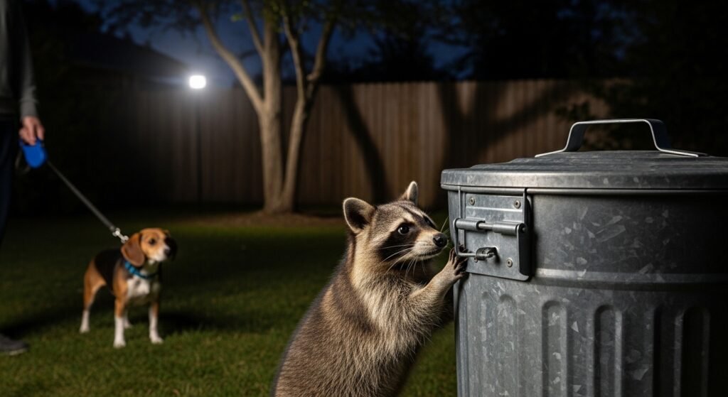 Raccoons can defend themselves if cornered. They may also carry diseases transmissible to pets. The combination of garbage bin security and nighttime activity supervision creates a safe environment for people.