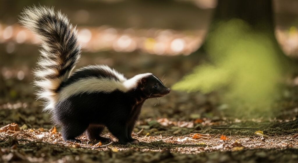 Skunks avoid fighting with others, but they will use their spraying ability when someone startles them. The scent can cause irritation and require thorough cleaning.