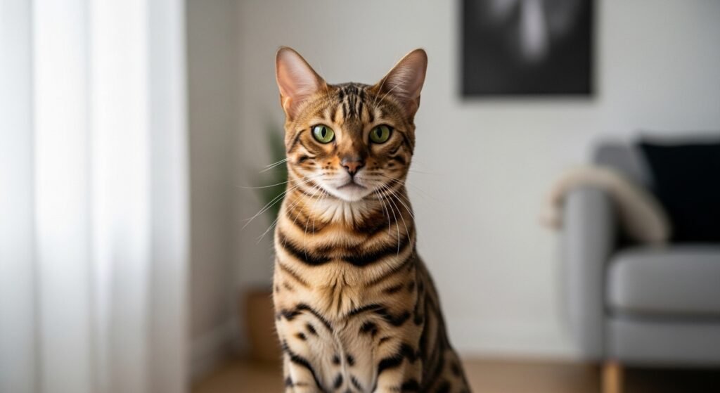 Bengals are muscular and athletic, generally weighing between 8 – 15 pounds, but their solid  figure makes them appear larger than average domestic cats. They are largely active, intelligent, and bear substantial playtime and enrichment. Their short fleece is low-conservation, but their energy position is not daily interactive play is essential to help destroy boredom.