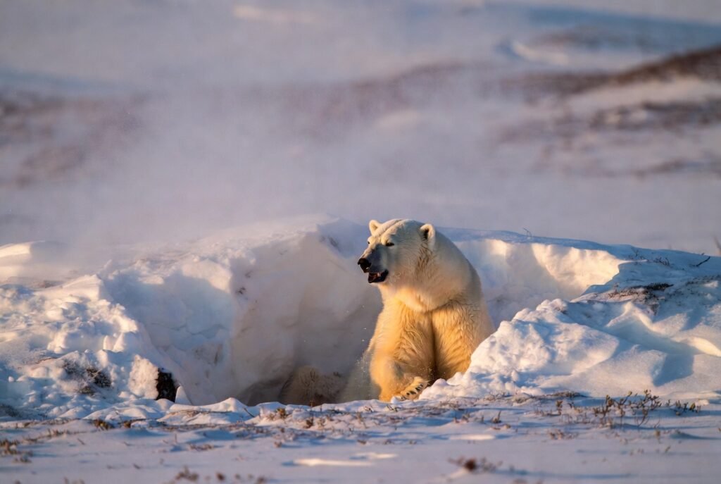 Womanish polar bears are conforming to denning locales and timing due to unstable ice conditions. Some now den on land more constantly, indicating behavioral elaboration linked to environmental change.