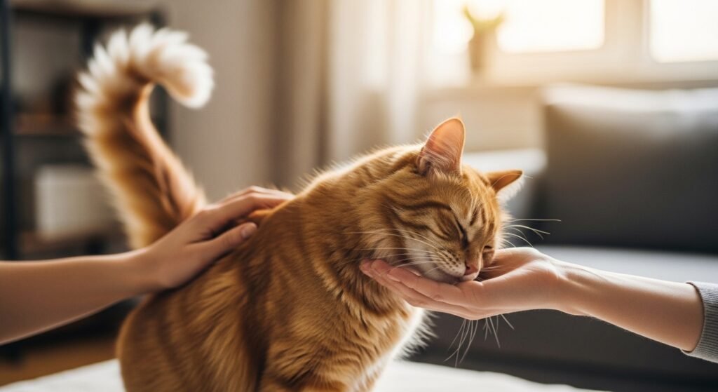 Cats usually begin their social interactions by showing affection to humans. People can learn when to touch a cat or when to stay away from it by observing its tail movements, ear positions, and body stance. People can establish trust through respectful behavior which develops their relationship with others.