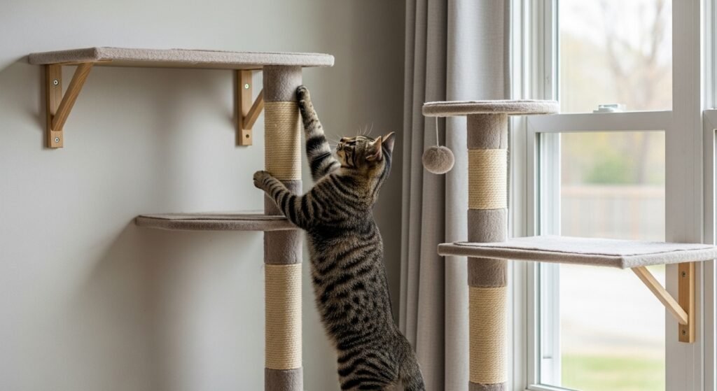 Cats need to reach high places because it provides them with both safety and a view of their surroundings. Cats can observe their surroundings through elevated shelves and cat trees and window perches because these structures let them rest without exposing themselves to danger. The use of vertical areas in homes which contain multiple pets allows animals to escape from overwhelming social situations.