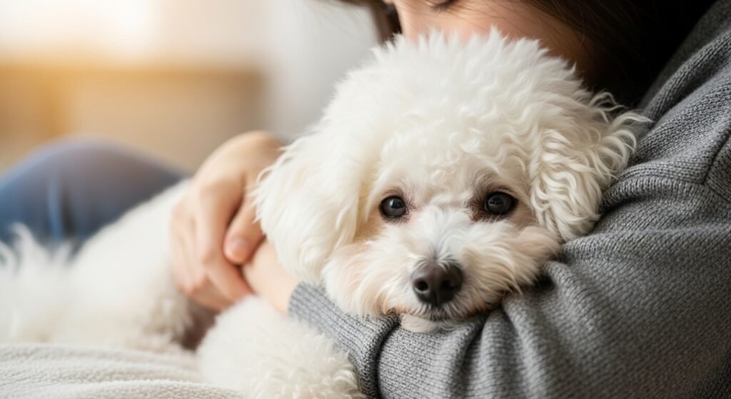Bichon Frises are gentle, and tender and prefer human company. They like sitting side by side and being snuggled and frequently like pampering by the owner as a source of comfort and attachment.