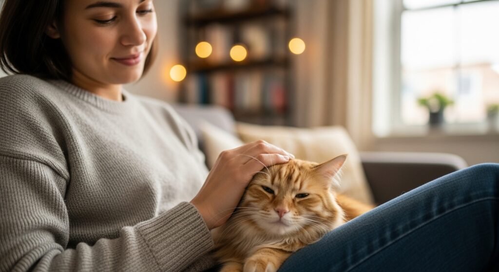 Cats use their perception of voice tone and body movements to understand human emotions. Positive interactions between humans and cats create lasting beneficial bonds through calm and relaxed behavior.