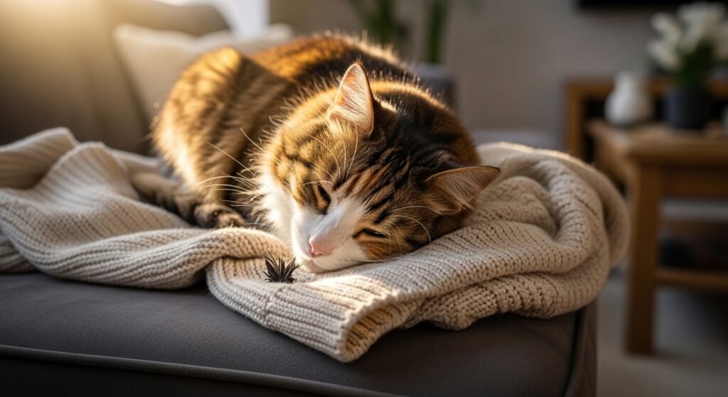 Another reason is that cats retain memories about your couch and bed positions. Many gravitate to those places in your absence because they carry both scent and routine cues.