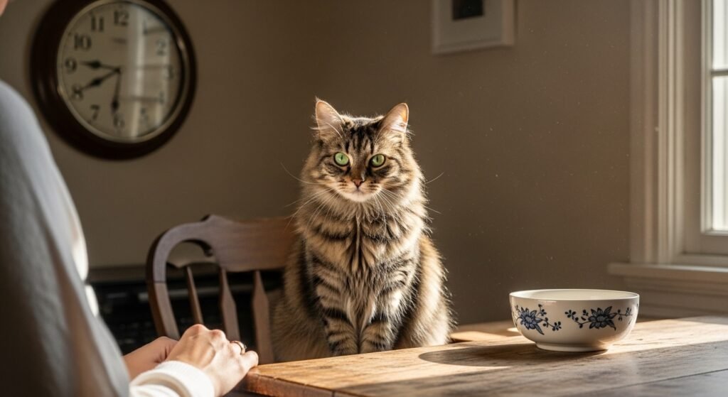 Your cat links you to meal times because you serve as their primary food provider. Time-based memory plays a strong role here.