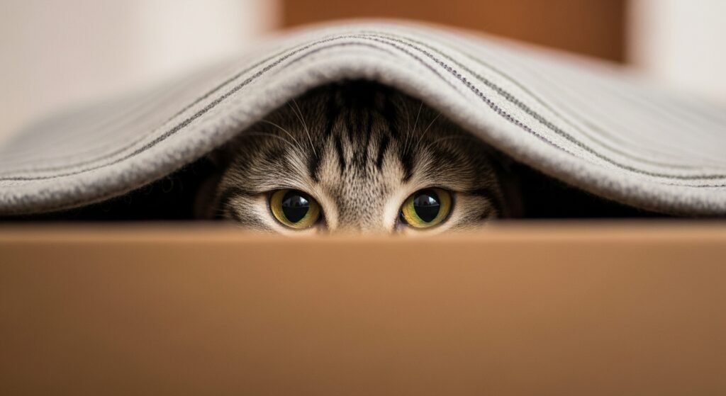 Pussycats feel secure when they have places to retreat. Boxes, covered beds, or quiet corners help them relax. Numerous homes are open and clutter-free, unintentionally removing these comforting caching areas.