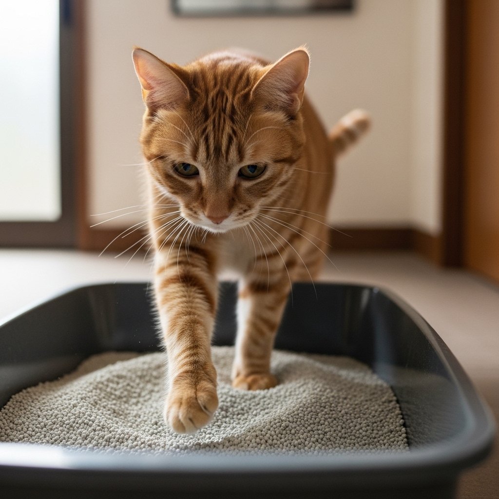 Fresh litter often carries new scents. Cats use their noses to explore these subtle changes before settling back into their normal habits.