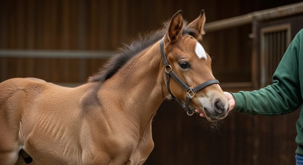 Horses possess high sensitivity to emotional signals from other people. A handler who maintains constant relaxation throughout the process ensures the young horse remains at ease.