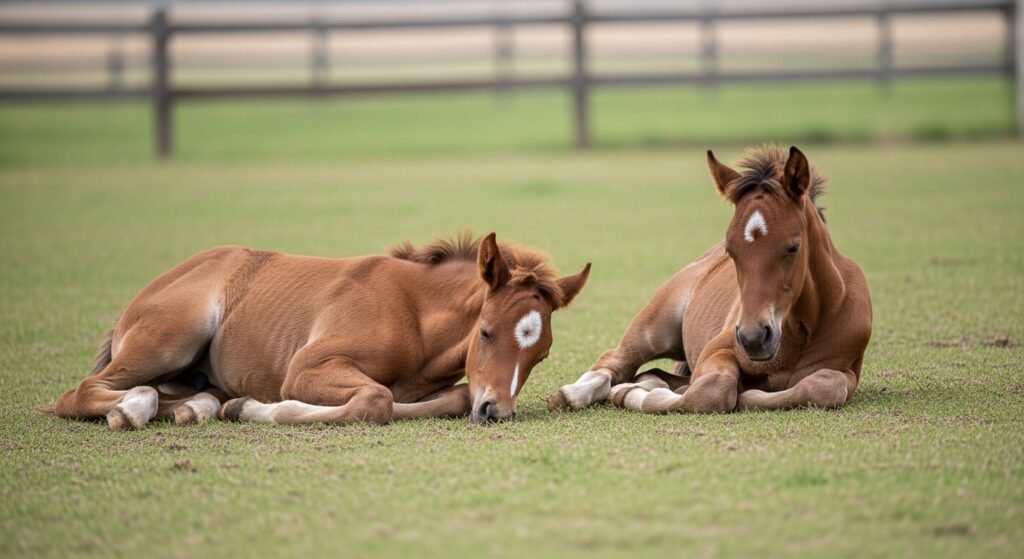 Young foals need to sleep frequently because their bodies grow quickly during this period. Short naps throughout the day are normal.