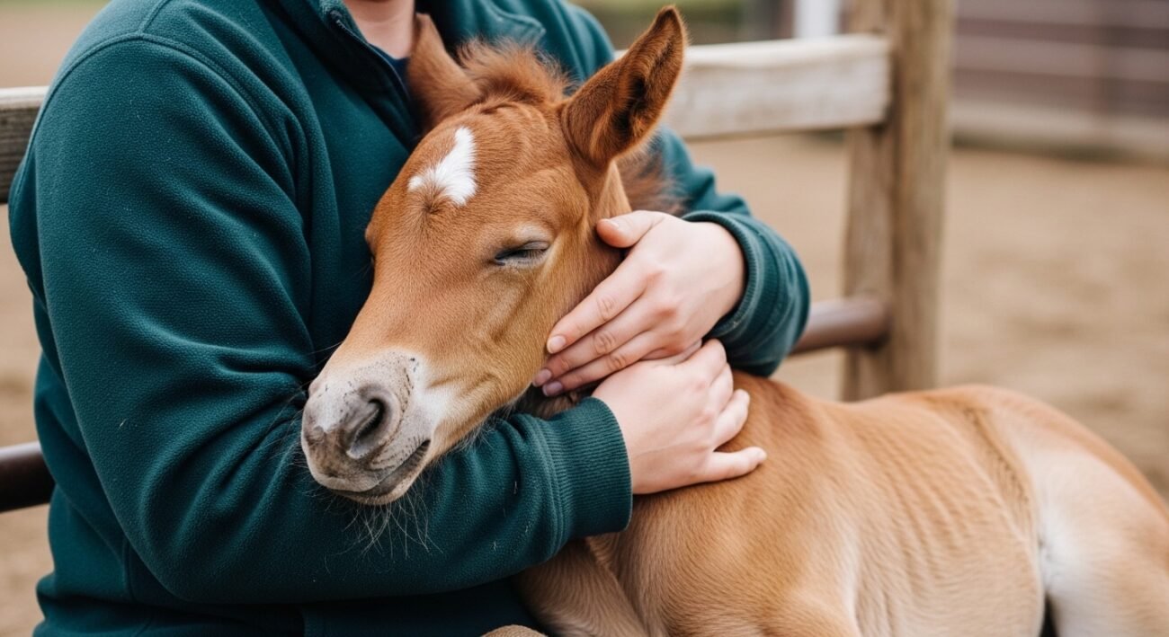 Watch This Adorable Foal Fall Asleep In His Human Mom’s Arms