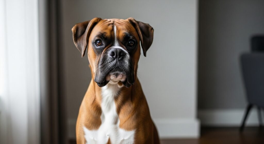 Boxers are energetic but unexpectedly well-mannered when trained rightly. They are intelligent, pious, and eager to learn rules and routines. Boxers get along very well with their families and behave positively towards them.