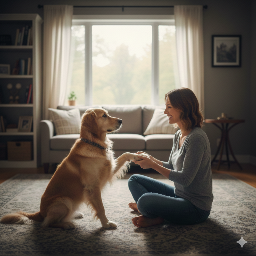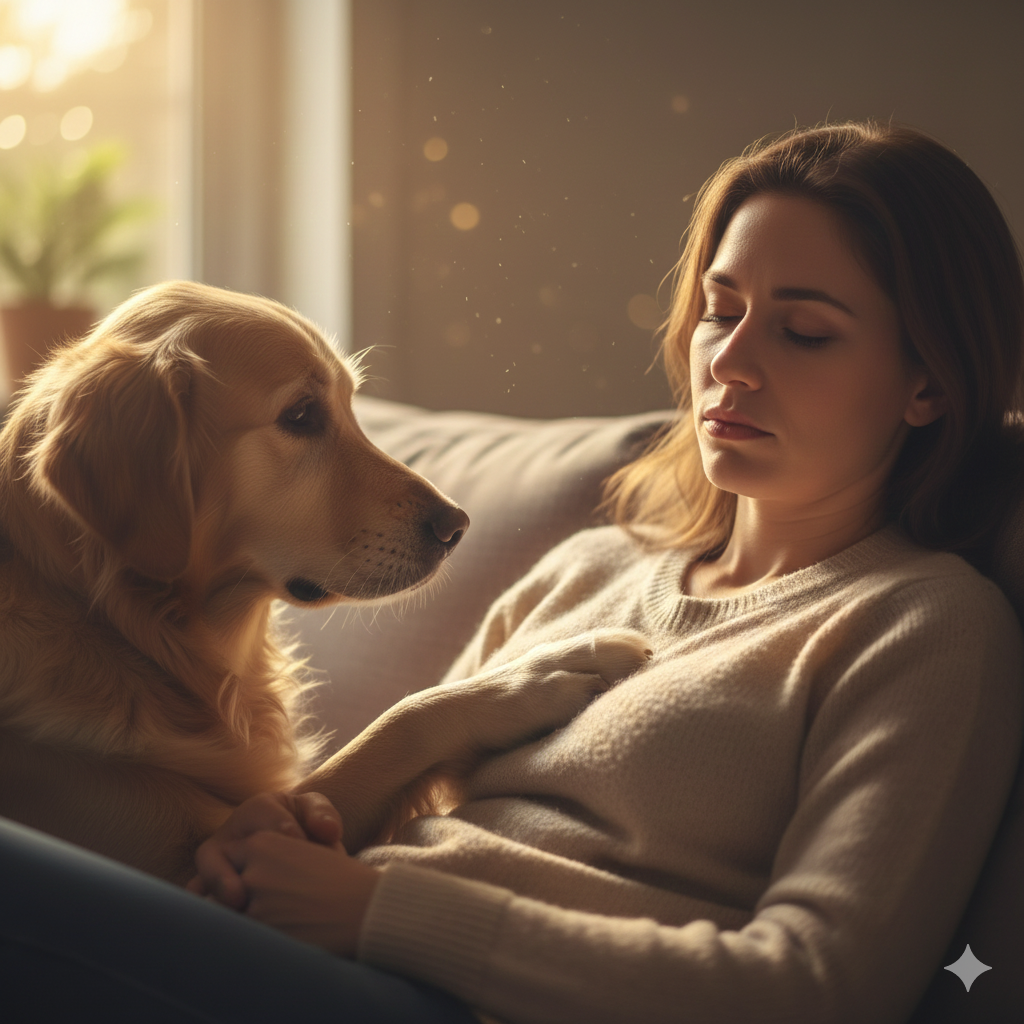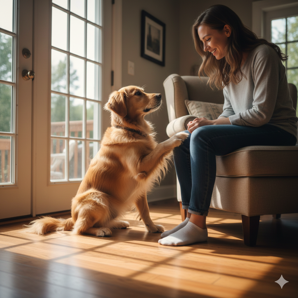 Your dog knows when you are sad. They are really perceptive, you know. He touches you with his paw to comfort you. He wants to give you love when you need it most right then.