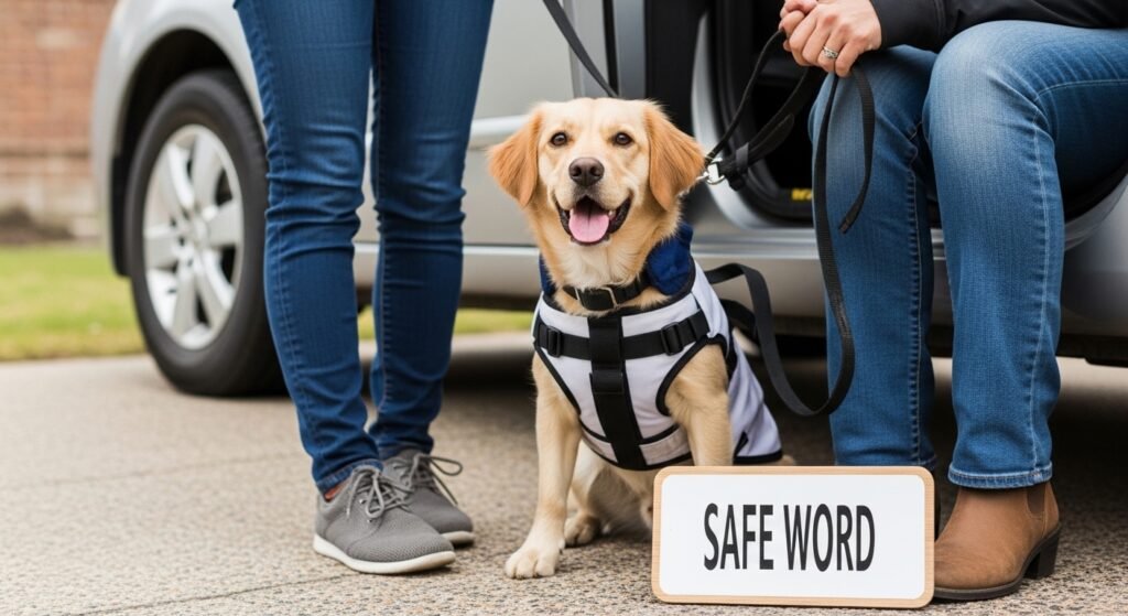 The word functions as a familiar safe word when people return from a car ride or enter their home. The dog needs to learn the word through this method because experts recommend this approach for training.